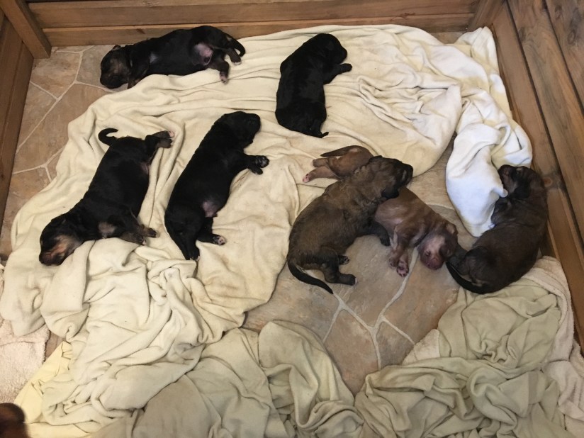Cara gave birth to 7 adorable puppies on November 7th! Little Aussiedoodles will be ready for their new homes January 2nd, 2019.